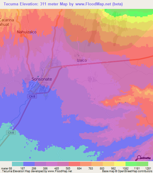 Note:Please note that Tecuma,El Salvador Elevation Map is in beta.