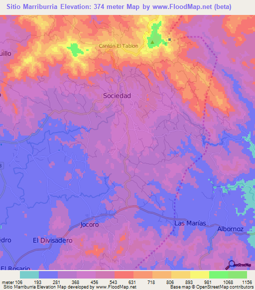 Note:Please note that Sitio Marriburria,El Salvador Elevation Map is in beta.