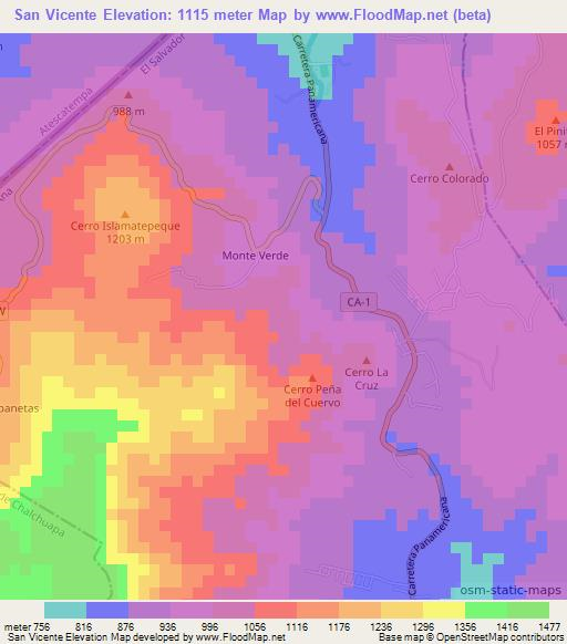 Note:Please note that San Vicente,El Salvador Elevation Map is in beta.