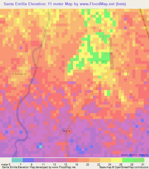 Note:Please note that Santa Emilia,El Salvador Elevation Map is in beta.