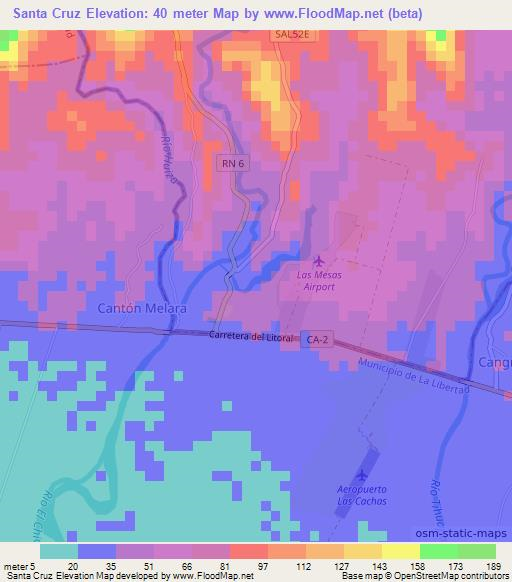 Note:Please note that Santa Cruz,El Salvador Elevation Map is in beta.
