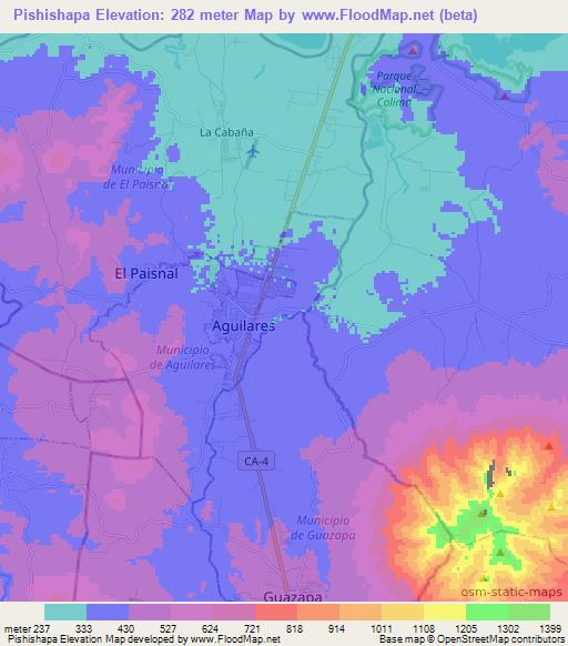 Pishishapa,El Salvador Elevation Map is displayed at different zoom levels.