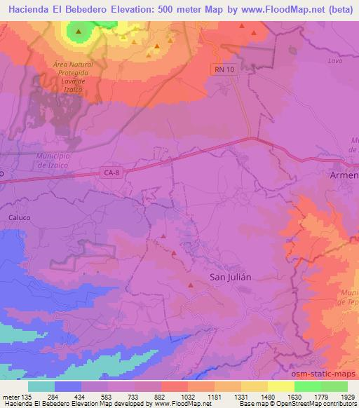 Hacienda El Bebedero,El Salvador Elevation Map is displayed at different zoom levels.