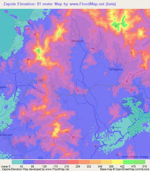 Note:Please note that Zapote,Costa Rica Elevation Map is in beta.