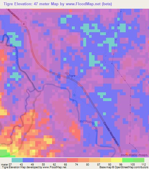 Note:Please note that Tigre,Costa Rica Elevation Map is in beta.