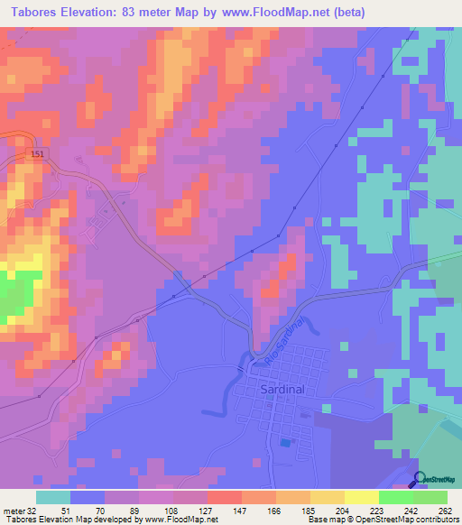 You have to give credit by linking to this Tabores,Costa Rica Elevation Map page.
