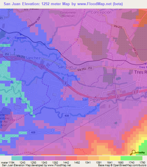 Note:Please note that San Juan,Costa Rica Elevation Map is in beta.