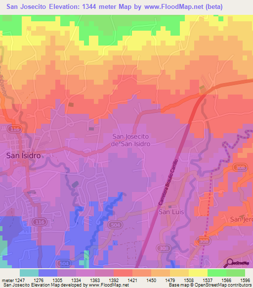 Note:Please note that San Josecito,Costa Rica Elevation Map is in beta.