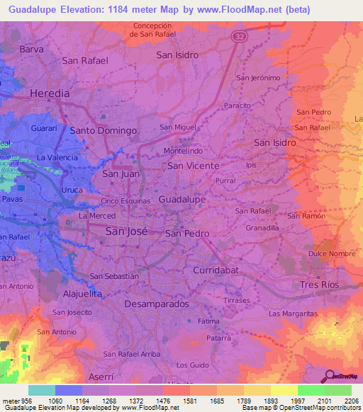 Note:Please note that Guadalupe,Costa Rica Elevation Map is in beta.