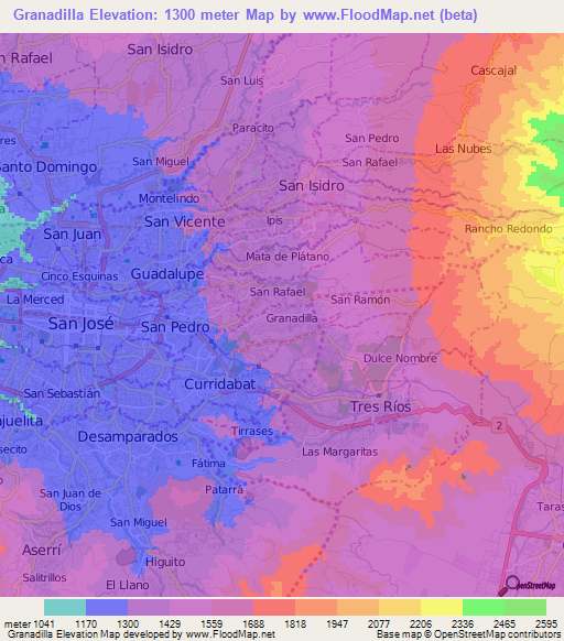 Note:Please note that Granadilla,Costa Rica Elevation Map is in beta.