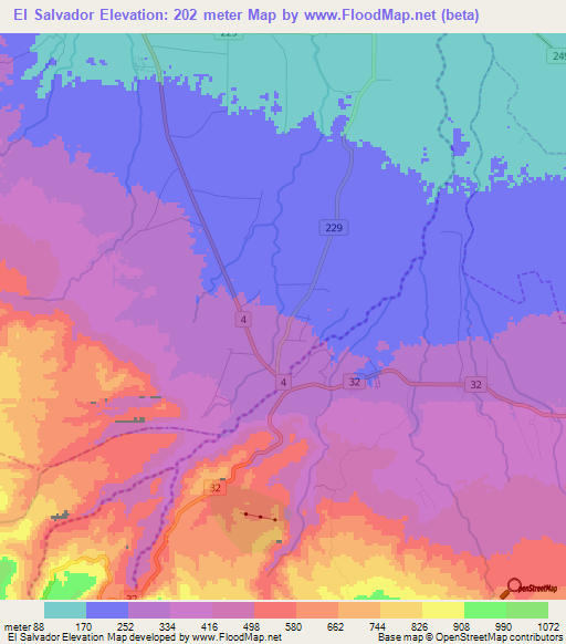 Note:Please note that El Salvador,Costa Rica Elevation Map is in beta.