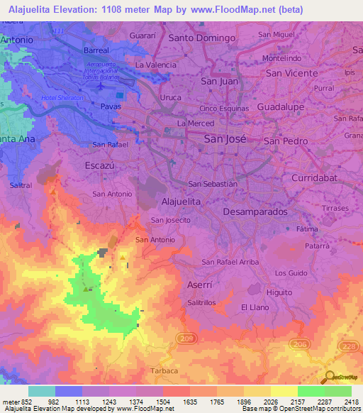 Note:Please note that Alajuelita,Costa Rica Elevation Map is in beta.