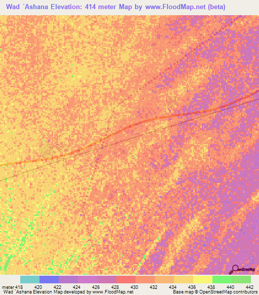 Note:Please note that Wad `Ashana,Sudan Elevation Map is in beta.