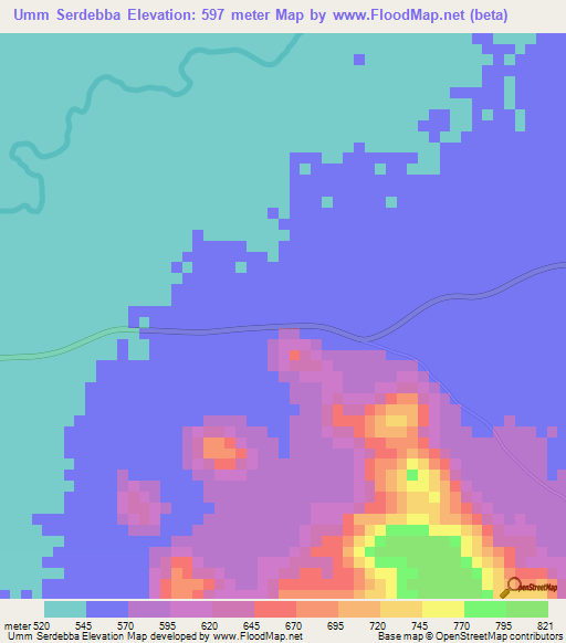 Note:Please note that Umm Serdebba,Sudan Elevation Map is in beta.