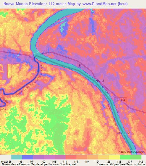 Nueva Manoa,Bolivia Elevation Map is displayed at different zoom levels.