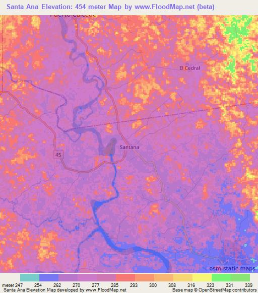 Santa Ana,Colombia Elevation Map is displayed at different zoom levels.