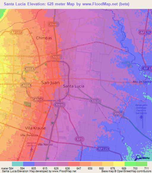 Note:Please note that Santa Lucia,Argentina Elevation Map is in beta.