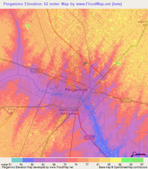 Note:Please note that Pergamino,Argentina Elevation Map is in beta.