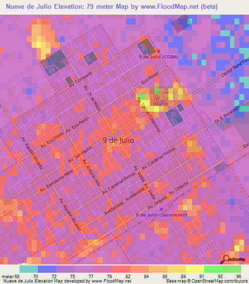 Note:Please note that Nueve de Julio,Argentina Elevation Map is in beta.