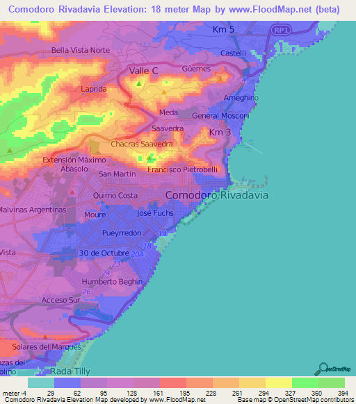 Note:Please note that Comodoro Rivadavia,Argentina Elevation Map is in beta.