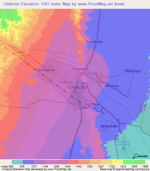 Note:Please note that Chilecito,Argentina Elevation Map is in beta.