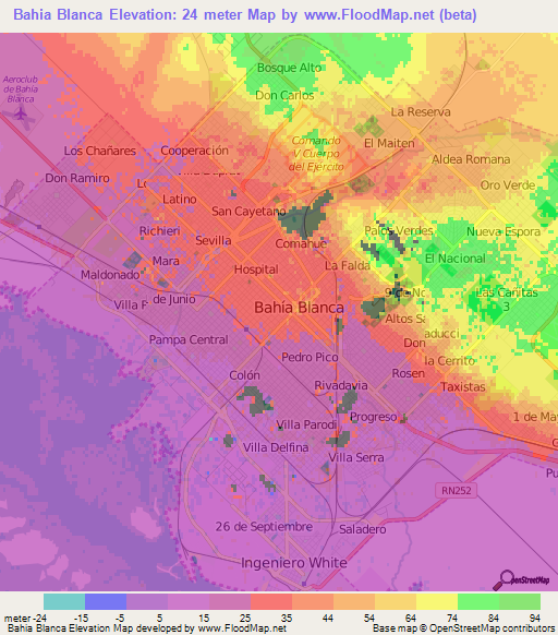 Note:Please note that Bahia Blanca,Argentina Elevation Map is in beta.