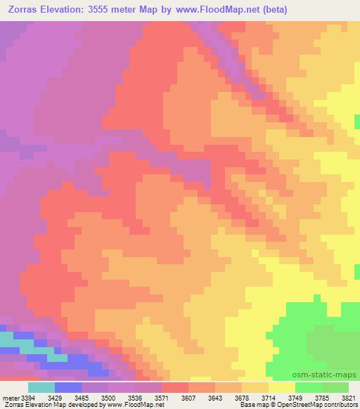 Note:Please note that Zorras,Chile Elevation Map is in beta.