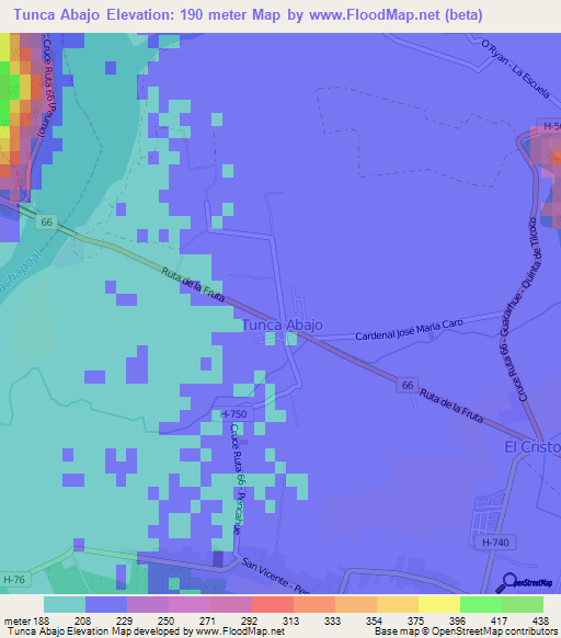 Note:Please note that Tunca Abajo,Chile Elevation Map is in beta.