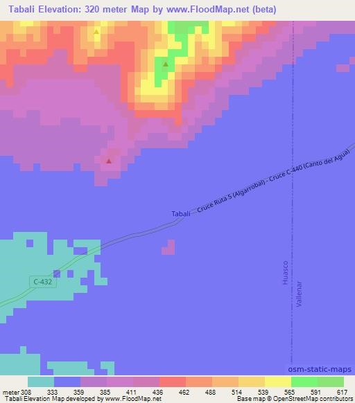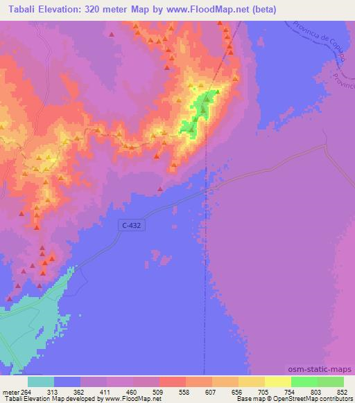 Note:Please note that Tabali,Chile Elevation Map is in beta.
