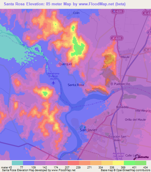 This Santa Rosa,Chile Elevation Map is licensed under CC BY-SA.