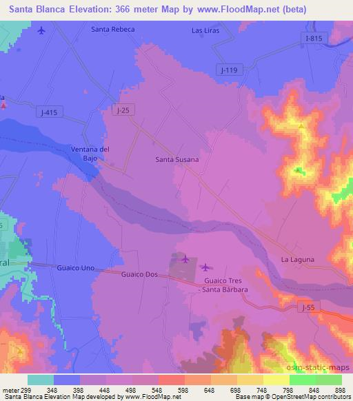 Note:Please note that Santa Blanca,Chile Elevation Map is in beta.