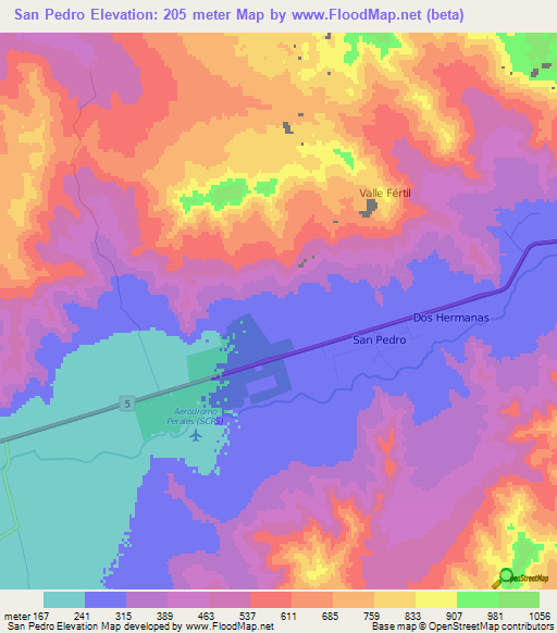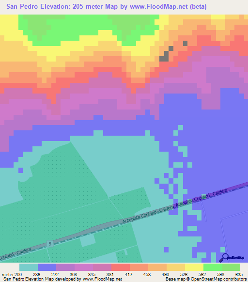 Note:Please note that San Pedro,Chile Elevation Map is in beta.
