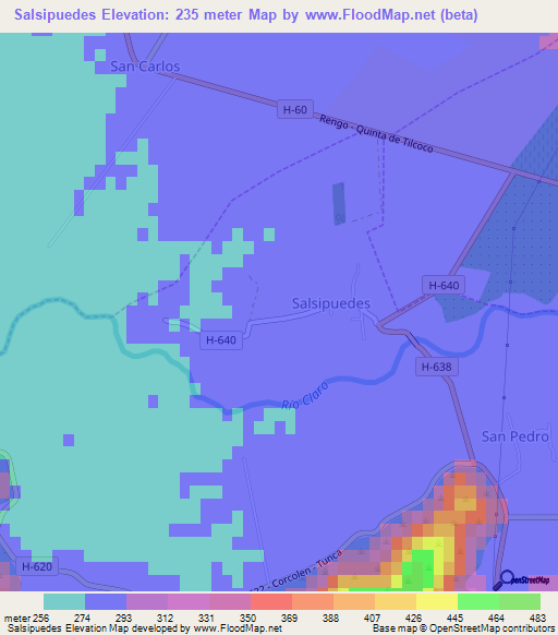 You have to give credit by linking to this Salsipuedes,Chile Elevation Map page.