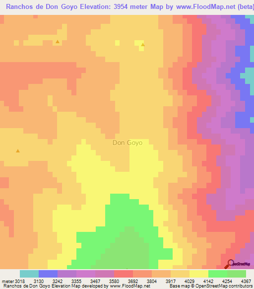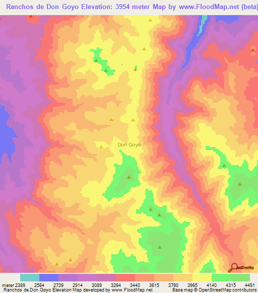 Below is the Elevation map of Ranchos de Don Goyo,Chile, which displays range of elevation with different colours.
