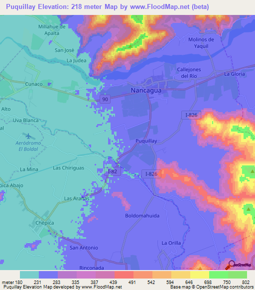 Note:Please note that Puquillay,Chile Elevation Map is in beta.