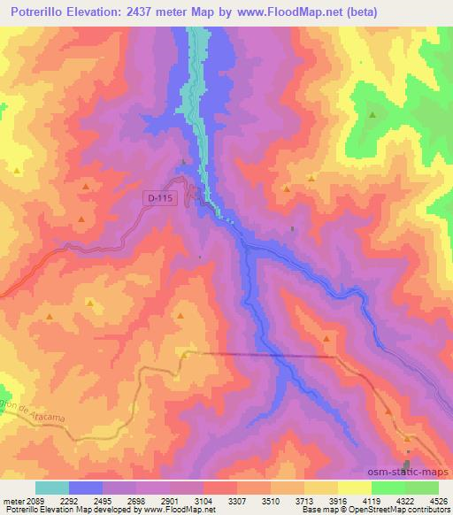Note:Please note that Potrerillo,Chile Elevation Map is in beta.