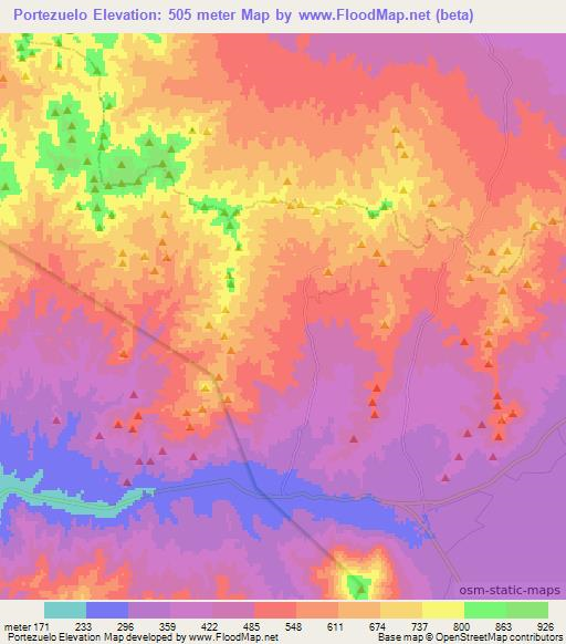 Portezuelo,Chile Elevation Map is displayed at different zoom levels.
