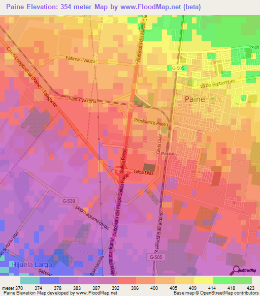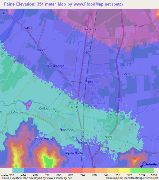 Note:Please note that Paine,Chile Elevation Map is in beta.