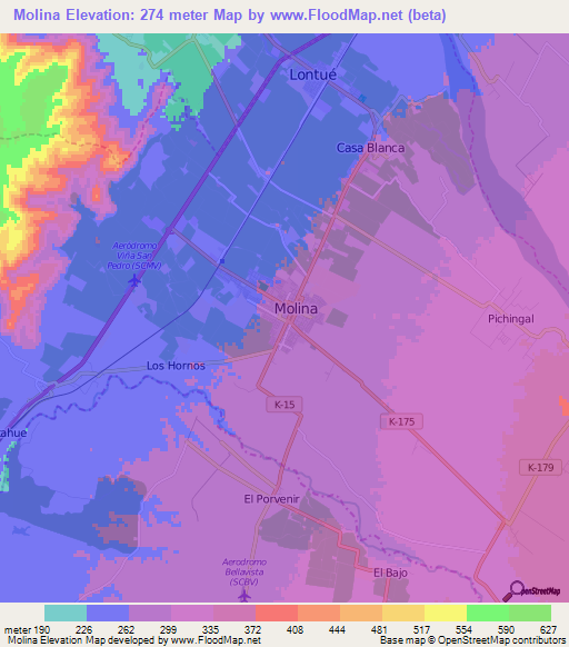 Note:Please note that Molina,Chile Elevation Map is in beta.