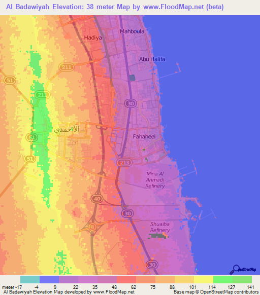This Al Badawiyah,Kuwait Elevation Map is licensed under CC BY-SA.