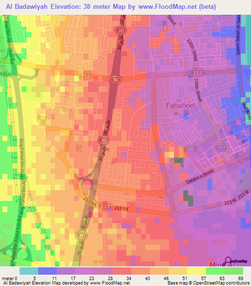Below is the Elevation map of Al Badawiyah,Kuwait, which displays range of elevation with different colours.