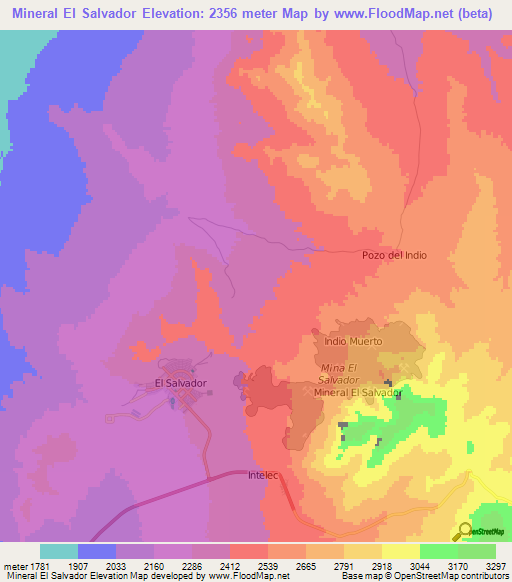 Note:Please note that Mineral El Salvador,Chile Elevation Map is in beta.