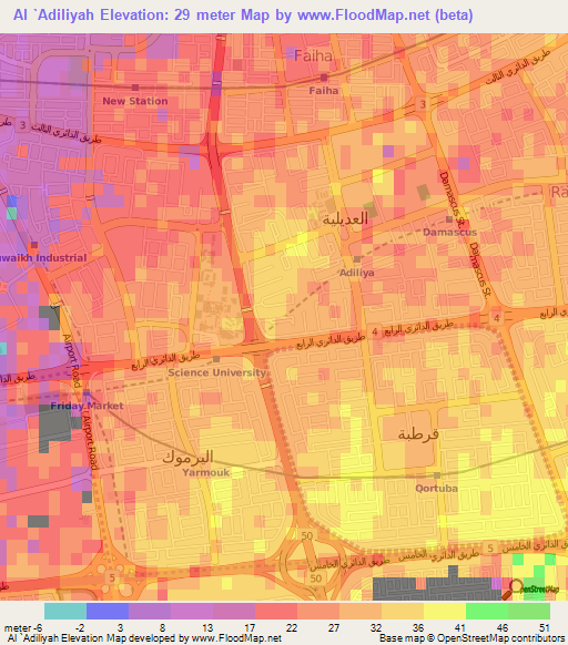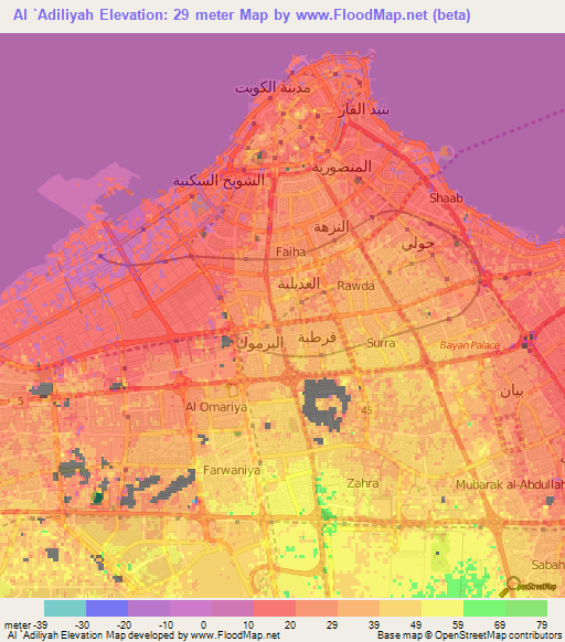 Note:Please note that Al `Adiliyah,Kuwait Elevation Map is in beta.