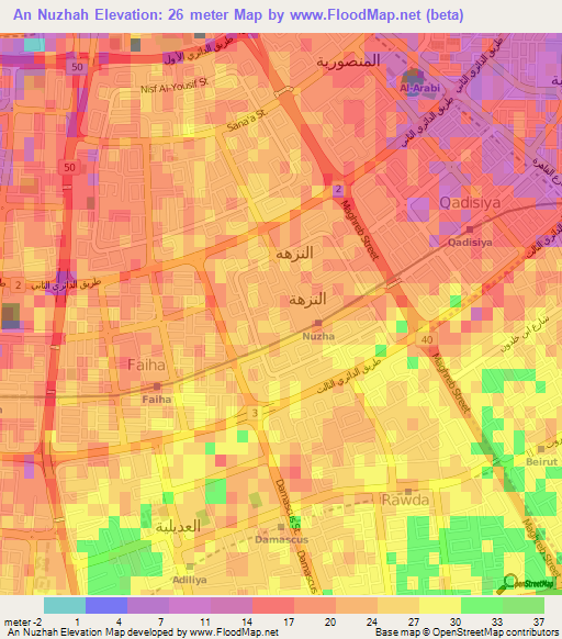Below is the Elevation map of An Nuzhah,Kuwait, which displays range of elevation with different colours.