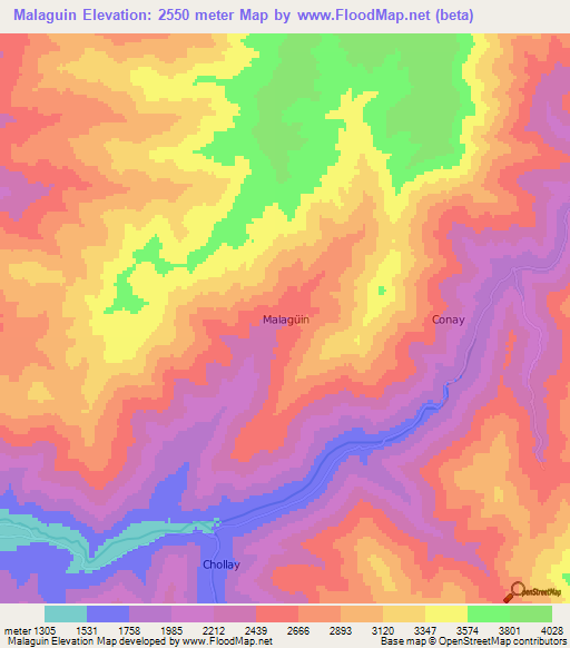 Note:Please note that Malaguin,Chile Elevation Map is in beta.