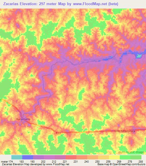 You have to give credit by linking to this Zacarias,Bolivia Elevation Map page.