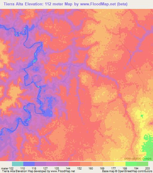 Note:Please note that Tierra Alta,Bolivia Elevation Map is in beta.