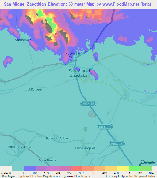 You have to give credit by linking to this San Miguel Zapotitlan,Mexico Elevation Map page.