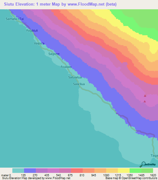 Note:Please note that Siutu,Samoa Elevation Map is in beta.