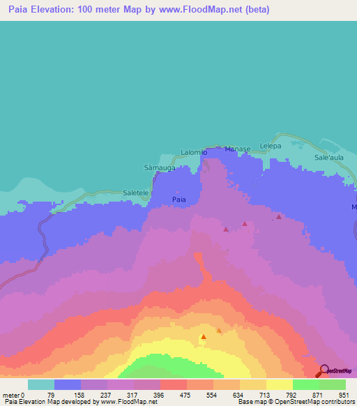 Note:Please note that Paia,Samoa Elevation Map is in beta.